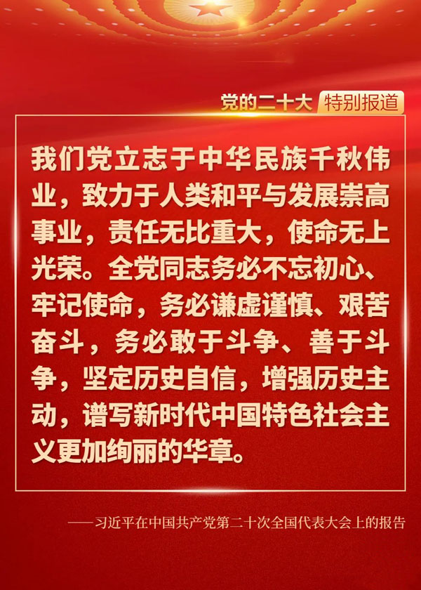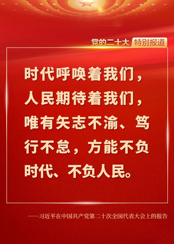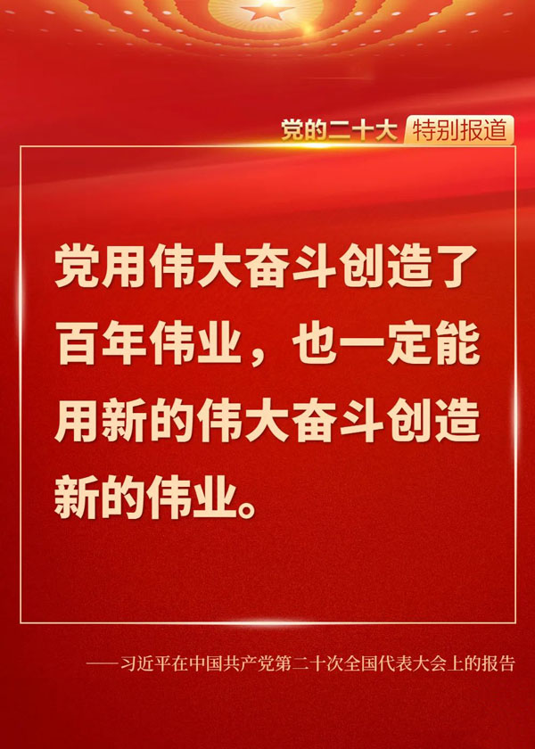 在全黨全國各族人民邁上全面建設社會主義現(xiàn)代化國家新征程、向第二個百年奮斗目標進軍的關鍵時刻,黨的二十大科學謀劃未來5年乃至更長時期黨和國家事業(yè)發(fā)展的目標任務和大政方針,為新時代的我們立起了新的歷史坐標,指明了新的奮斗方向,催人奮進、鼓舞人心。一起來重溫報告中的金句!