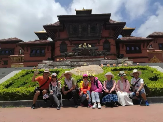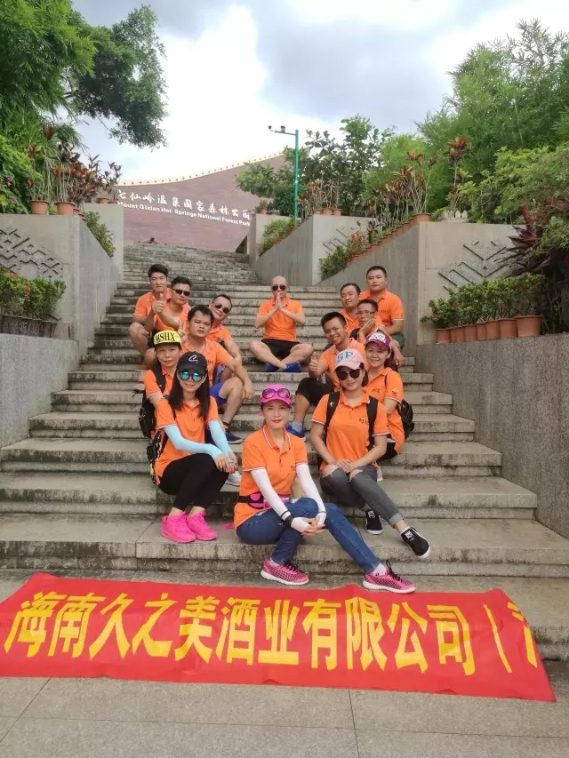 到達山腳下,先來個大合照,明亮活潑的橙色工裝吸引了不少人注目。