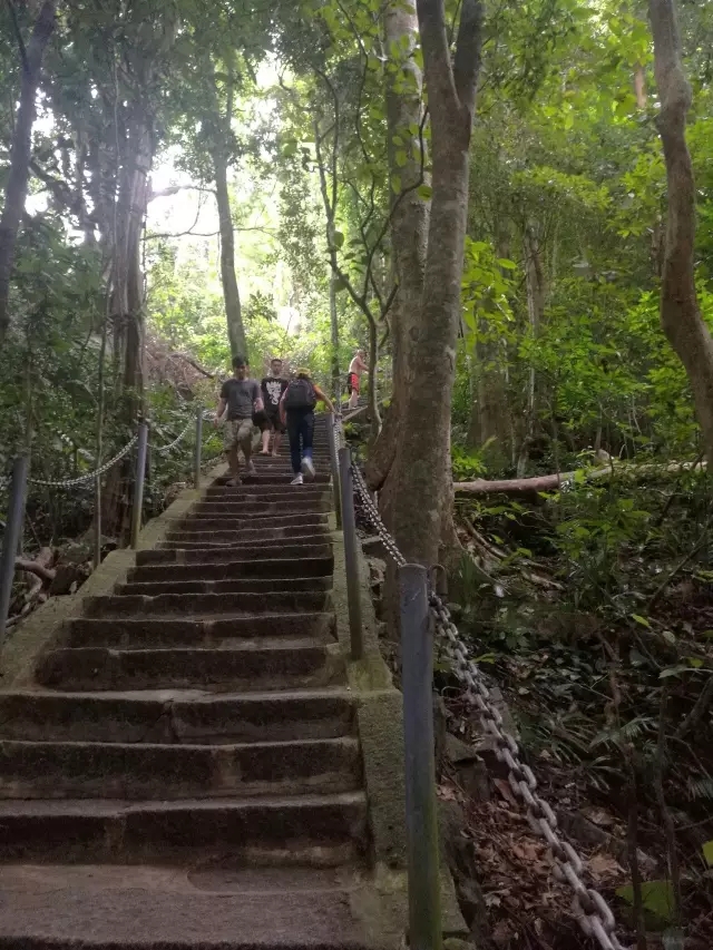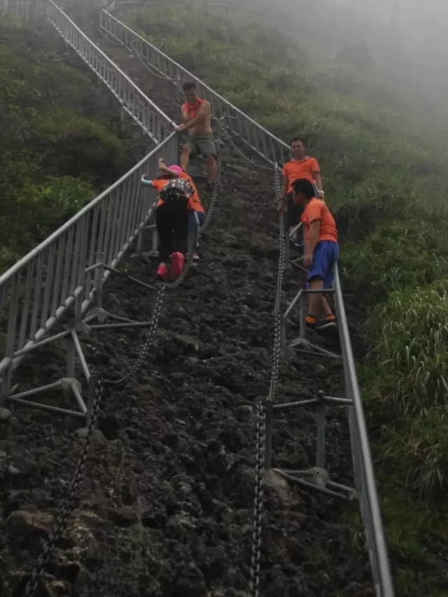上山的途中不斷遇到下山的人,他們總會鼓勵一定要爬上去看到那美麗的風景,就這樣相互打氣相互幫助我們堅持了下來。這段攀巖格外陡峭,好像是要告訴我們,想一覽山頂?shù)娘L光就必須付出雙倍努力,必須學會忍受心理和體力的極限。