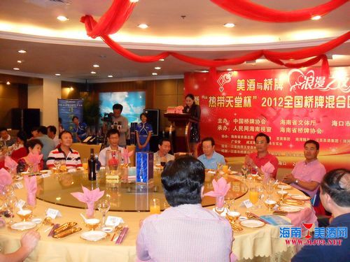 全國性體育賽事——“熱帶天堂杯”2012全國橋牌混合團(tuán)體賽在??趯毴A海景大酒店隆重開幕,包括數(shù)名世界冠軍在內(nèi)的全國各地橋牌高手云集???,角逐總共高達(dá)20萬元的獎(jiǎng)金。